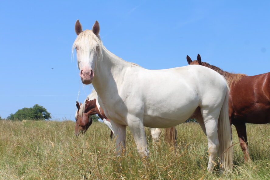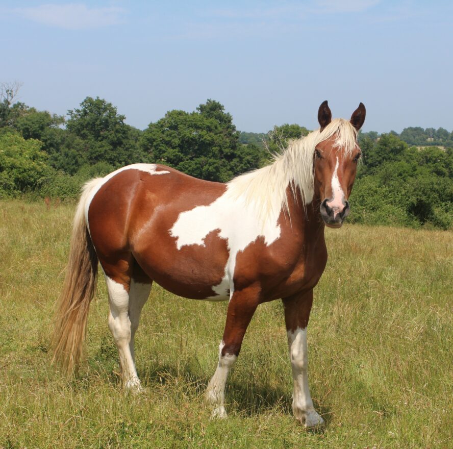 Poulain de 2022, très porteur nous l’avons acheté pour son croisement cob normand/ trait poitevin. Très proche de l’homme, manipulé au licol sans soucis.