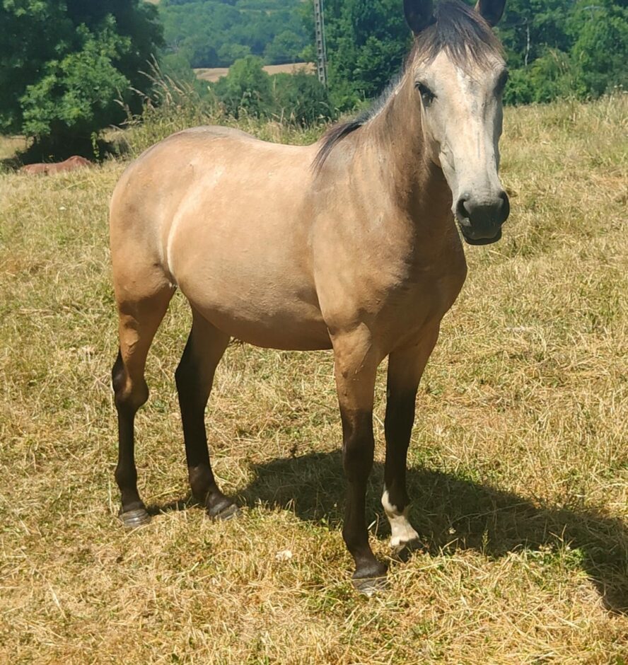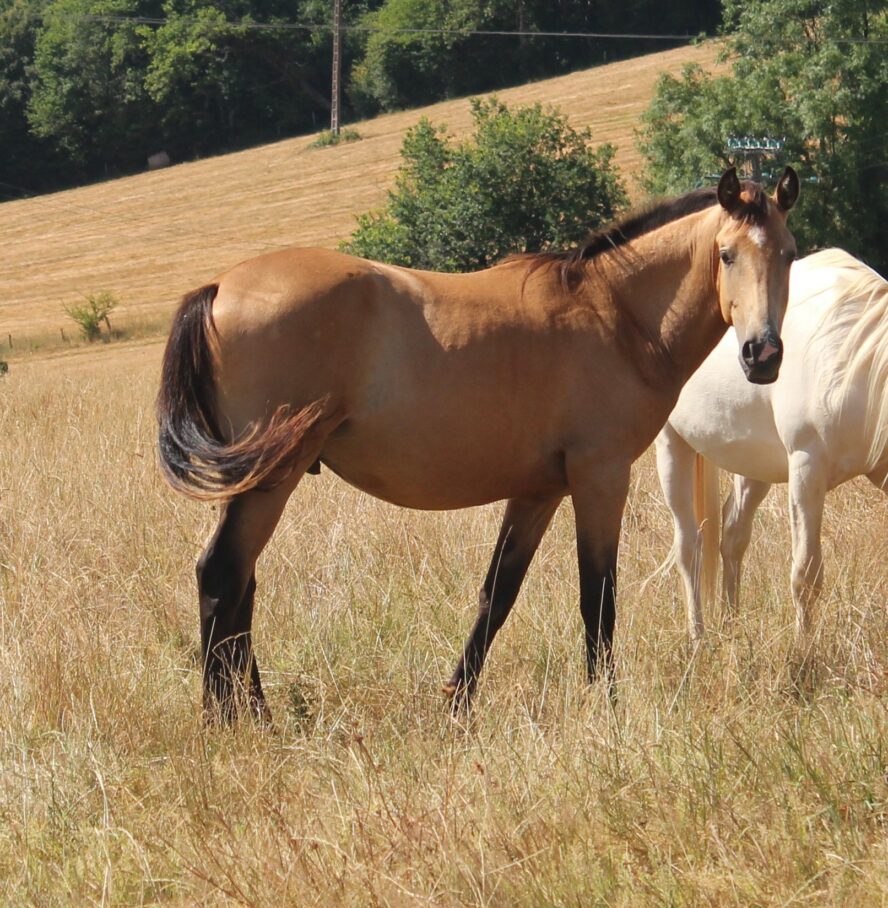 Née en 2024, croisement trotteuse française et quarter/lusitanien. Image de Brice et Bhaiti Jed, la propre soeur de Presto de l’Isop. Une gentille pouliche affectueuse, c’est mon employé Mickael qui l’a acheté.