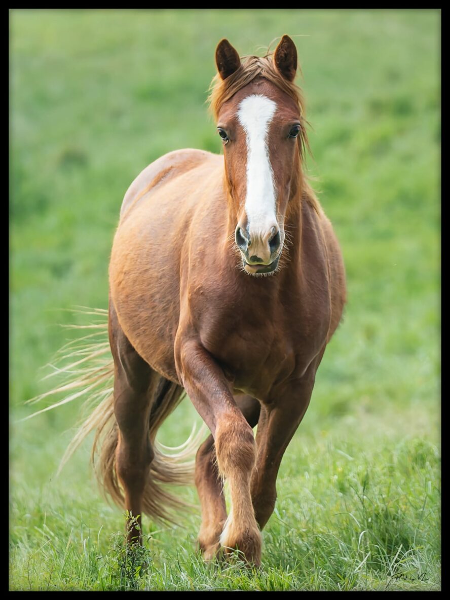 Premier poulain d’Abbie et Huracan VA né chez nous. Il est très proche de l’homme, toujours prêt à faire une petite bétise !