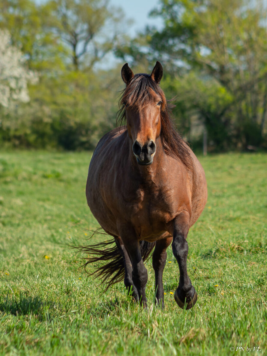 Jument très gentille elle vit au pré, elle est arrivée à la ferme au début de l’année 2022. Image est une trotteuse française, nous avons voulu faire une mûle en 2023 mais cela n’a pas abouti. Donc nous l’avons mise avec Bhaiti Jed, elle nous a fait 2 copies conforme Presto en 2025 et Orfée en 2024.