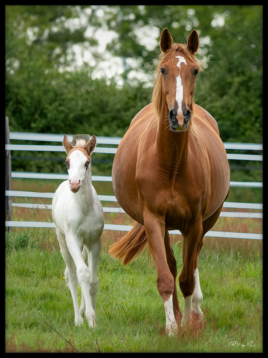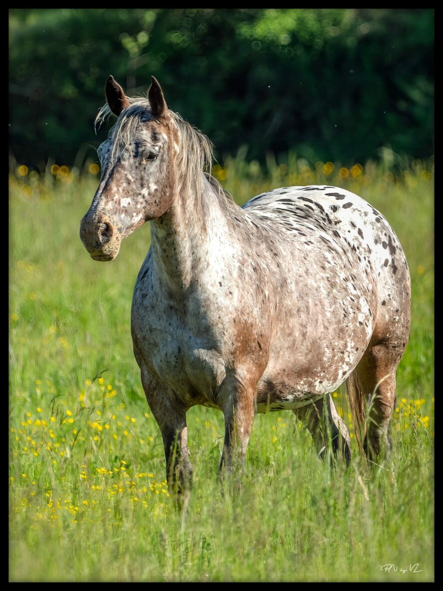 Cheyenne est une jument adorable qui au niveau de modèle est plus porteur que les autres. Elle est demi-trait avec une robe originale appaloosa qu’on ne trouve pas souvent chez ces modèles. Elle nous a fait 3 jolies poulains avec de la couleur et costaud.
