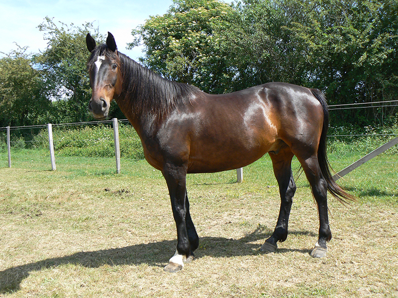 Cette jument bai et chez nous depuis qu’elle a 2 ans. Elle n’a pas été inscrite mais elle est d’origine jument de sport Belge. Elle a un formidable galop et un joli modèle. Avec notre étalon, elle a fait des poulains qui peuvent faire plaisir dans les différentes disciplines. Nous attendons actuellement son dernier poulain !
