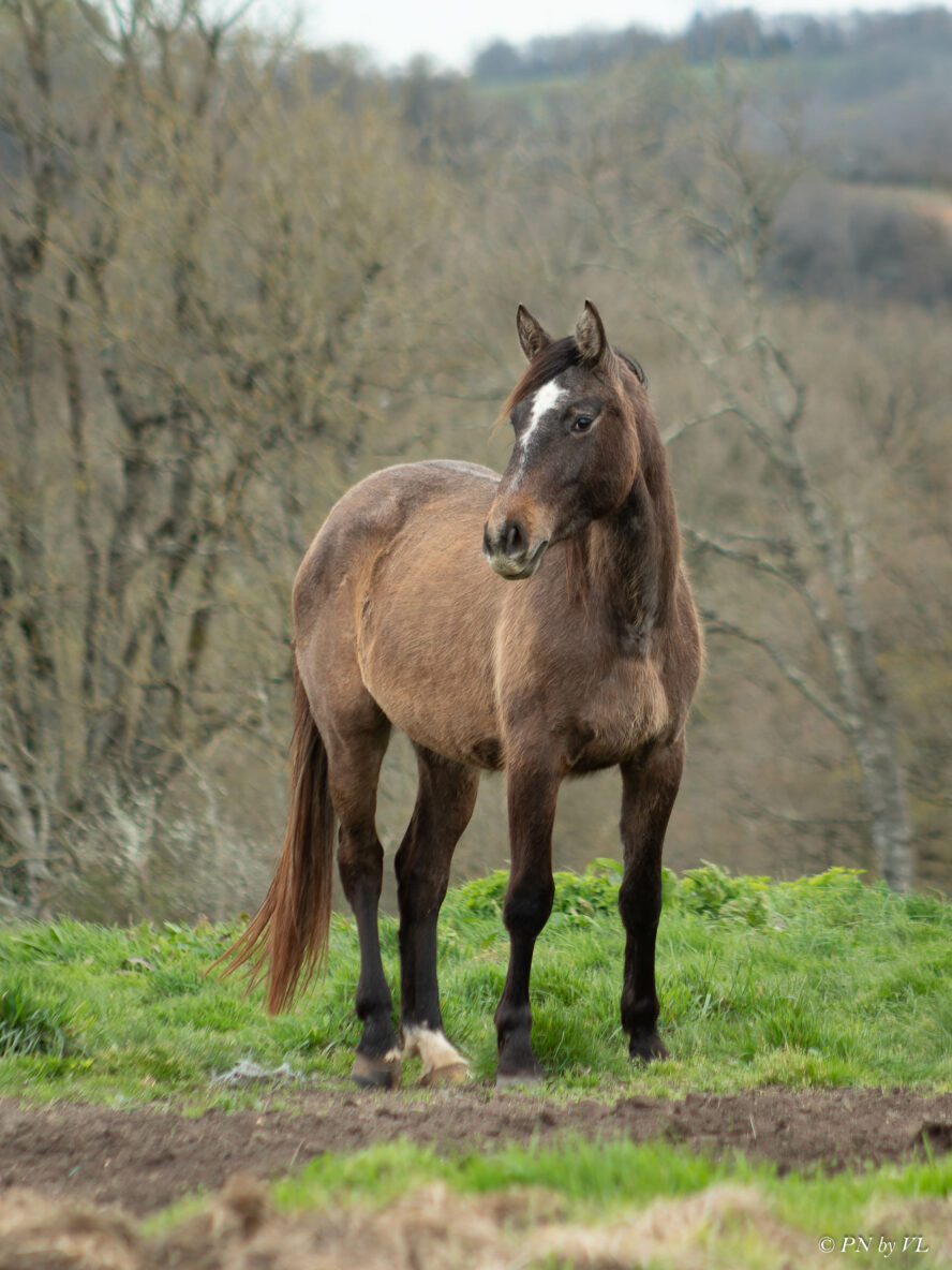 Il est aussi très affectueux et vit au pré avec Latoki. Il est issu d’Aquarelle d‘Adriers et de Conquistador. Sorti en concours comme Latoki, cheval avec du sang et joli coup de saut.