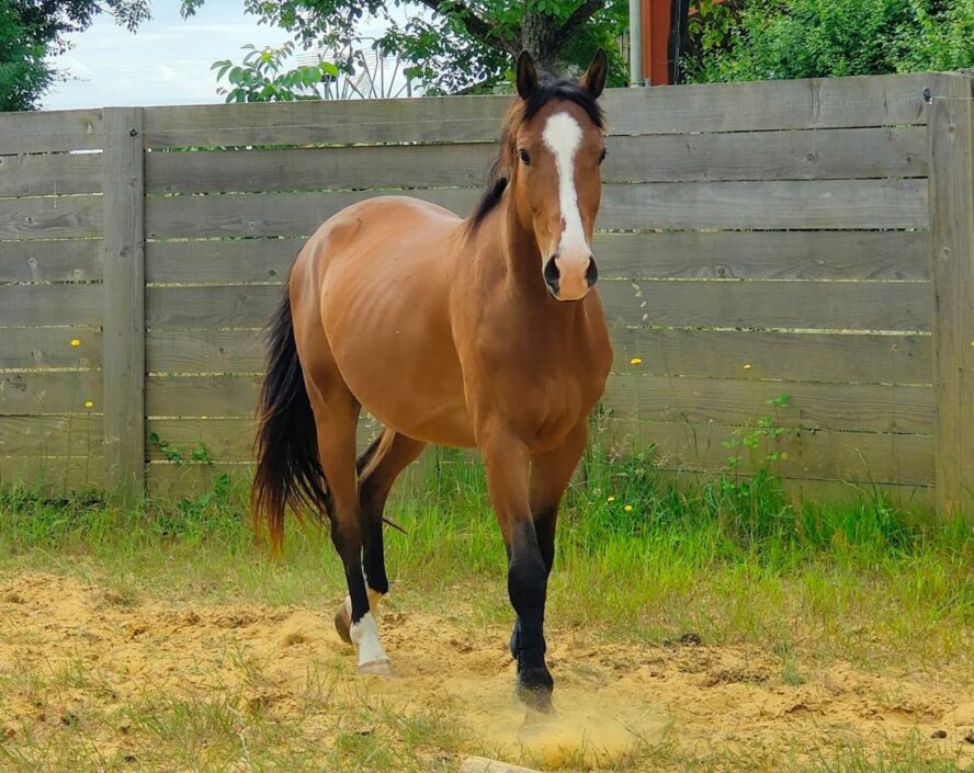 Kavale est une pouliche de 2020, sa mère est notre jument Sagachin du Moulin et son père est l’étalon Lauterbach. Elle travaille régulièrement et déja sorti en concours. Une jument avec du sang, idéal pour le sport.