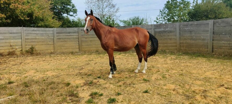 Hongre né en 2021 également, il est très curieux et affectueux. Il est de Fabalia van den Bisschop et de Catoki. Il a commencé les concours en 2025, cheval franc qui n’a pas peur. Il cherche son cavalier.