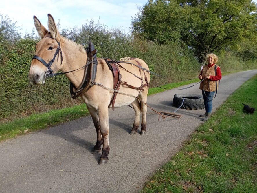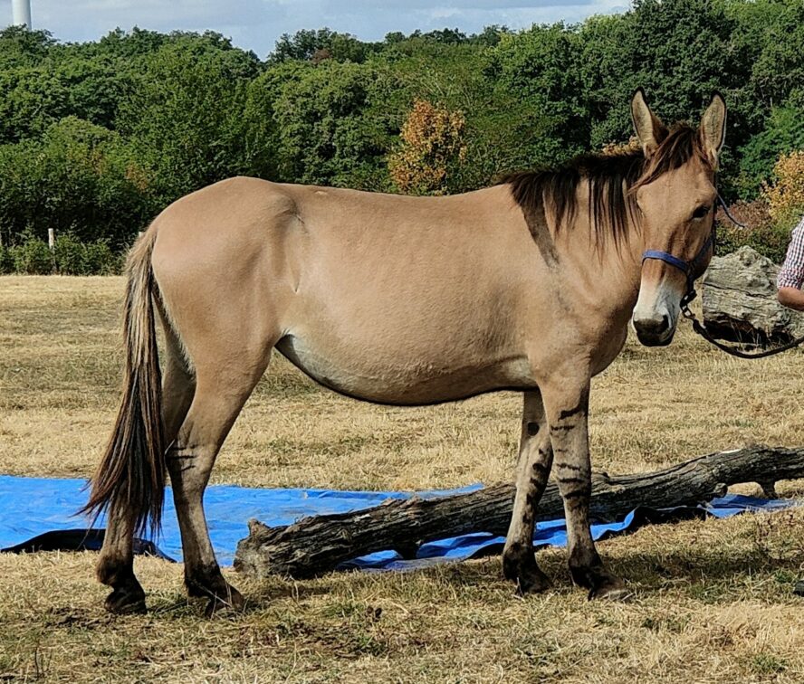 Mûle Poitevine débourrée monter, atteler et bâter. Je veux l’utiliser pour voyager en 2026 afin de porter les bagages, pour mon périple d’Europe à cheval. D’après celui qui l’a débourrée elle etait plutôt difficile mais elle s’est rendue et maintenant ça se passe très bien. Elle a un peu de caractère mais facile pour travailler avec.