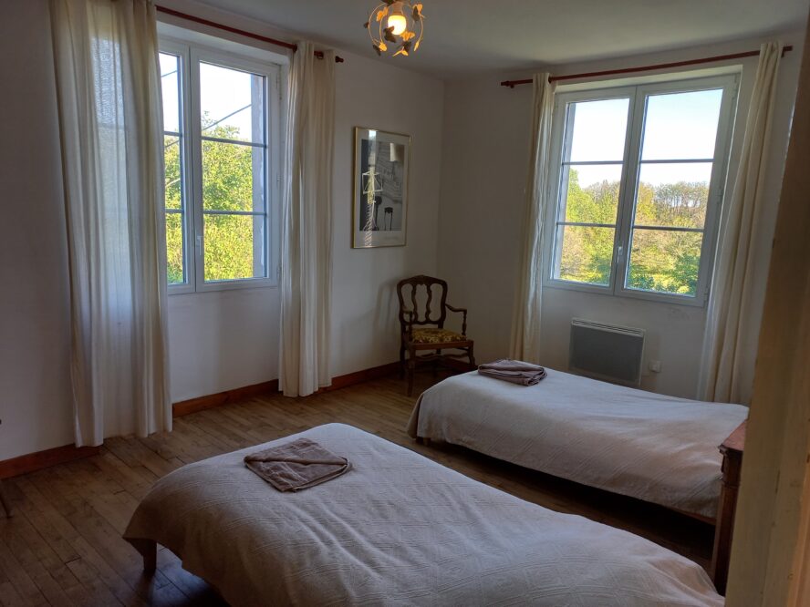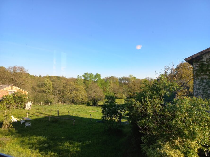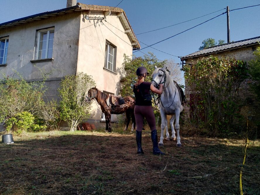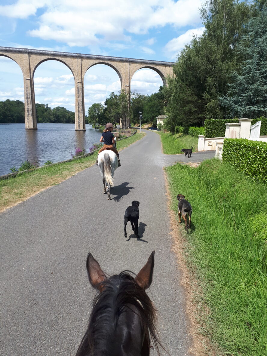 Après cette pause, direction l’ancienne ligne de chemin de fer pour un bon galop. Nous passons dans le village de Moussac pour arriver à notre gîte « La Genevrie » pour dormir où les chevaux seront juste en face de la maison. En contrebas du gîte passe la rivière de « La Blourde », nous pouvons prendre l’apéritif si le temps le permet.
